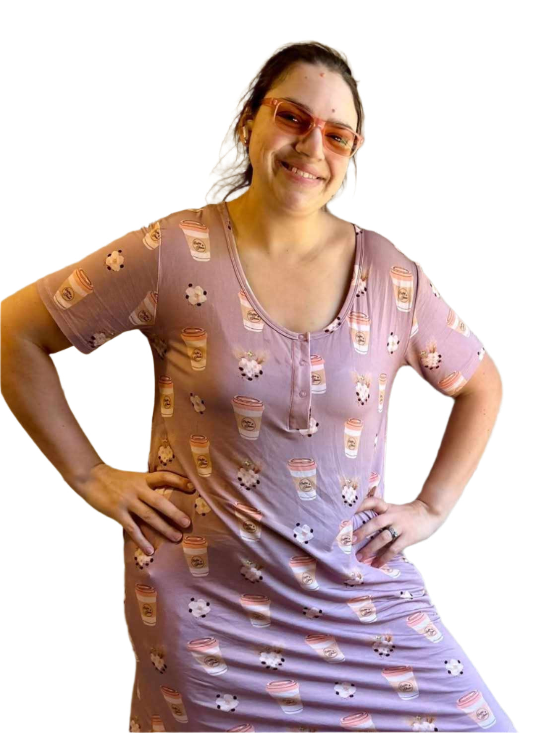 Dress yourself in this cozy soft nightgown or dress it up for the day! Buttons adorn the top to accommodate late night breast feeding sessions if needed and to provide style if not. Pockets keep you hands free so that you can tackle all of your tasks!