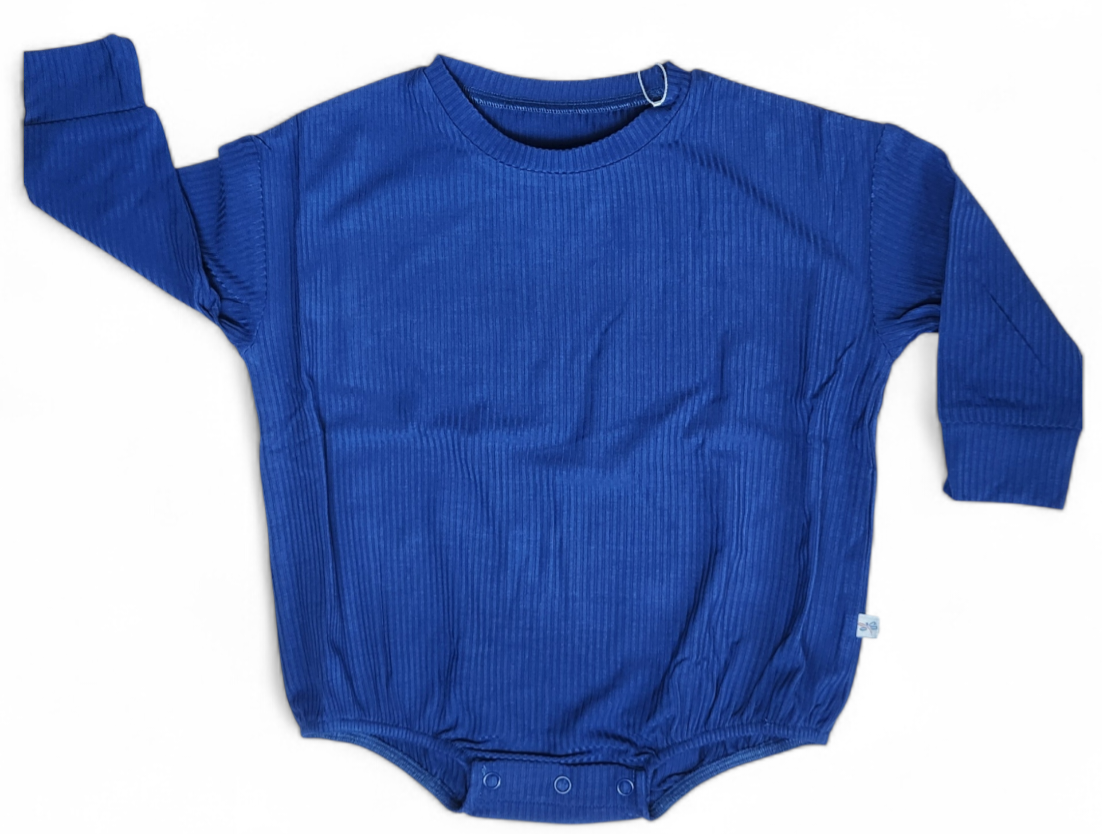 Navy Ribbed Long Sleeve Bubble Romper