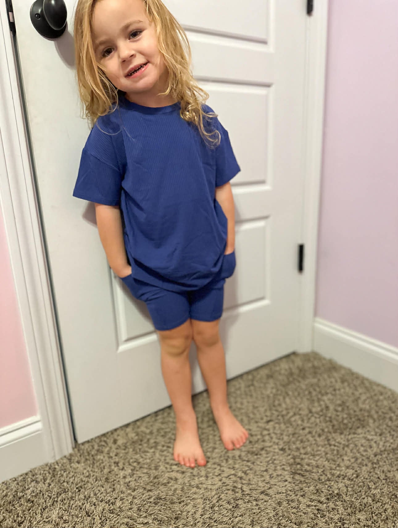 This Oversize shirt and biker shorts are sure to keep your toddler comfortable indoors or out!